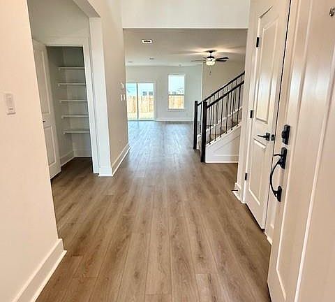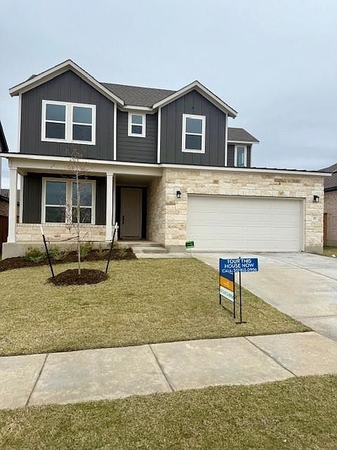 This floor plan provides 2,397 square feet with four bedrooms, three bathrooms and an airy loft, perfect for a home office or play area. The open layout connects the kitchen, dining and great room while the primary suite includes a large walk-in closet. Additional features on the home include spray foam insulation and pre-plumbing for water softener, full sod with full smart sprinkler system. Convenient onsite elementary school, amenities including luxury pool, parks, outdoor kitchen, club houses all in a hill country setting.