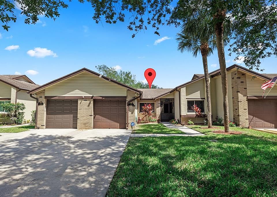 Enjoy this 2 bed/ 2 bath villa with an attached 1-car garage. Revel in vaulted ceilings complemented by a split bedroom layout. The kitchen has stainless steel appliances and backsplash with a separate laundry room. The primary bedroom has an ensuite bathroom featuring a walk-in shower. Expand your living space with a sunlit sunroom. Outside, the rear patio has privacy hedging and newly laid pavers. Village Walk is a 55+ community. Association fees include roof repairs and replacement, exterior painting, cable, insurance, driveway pressure cleaning, lawn maintenance, and exterior insect exterminating. Additionally, residents can enjoy the clubhouse, library, exercise room, and the tranquil surroundings of the community pool and hot tub. Enjoy the serenity of Village Walk.