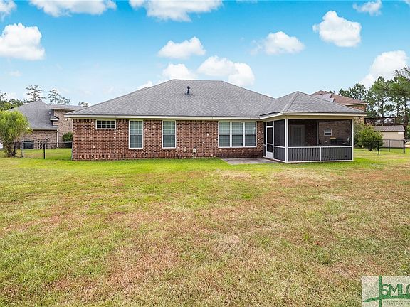 Say YES to this 4BR/3BA address in amenity filled Highland Falls Community. All Brick open split floor plan with ceramic tile flooring throughout main. Separate sitting area & formal dining room. Great Room with fireplace & custom wood cabinetry & shelving. Screened in porch seamlessly flows out into the fully fenced in backyard. Key features: granite kitchen countertops, stainless steel appliance package & finishes, 10+ ft ceilings, exquisite trim work/built in's, new blinds throughout, 2 car garage, spray foam insulation, ceiling fans with light kits throughout, etc. Primary bedroom on the main boasts a large walk-in closet with en-suite featuring whirlpool tub & separate walk-in shower. Upstairs bedroom with hardwood flooring, full bath & double closets. Home is located on cul-de-sac, extra parking pad, mature landscaping & irrigation system. Conveniently located within minutes of Pooler, Jimmy Deloach, Airport, interstates, SCAD, shopping & restaurants. Not in Flood Zone.