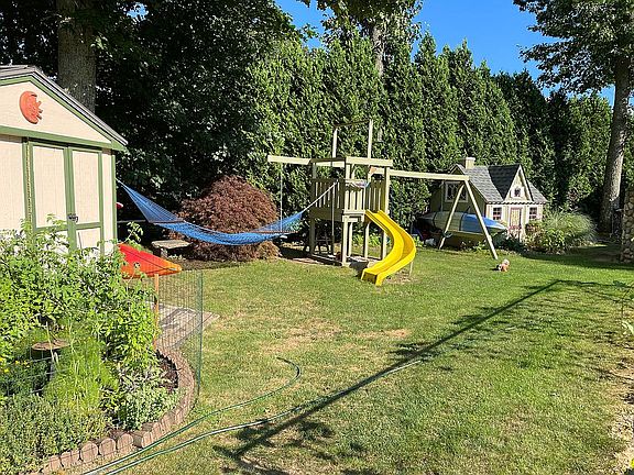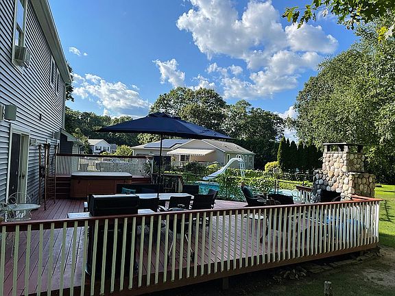 loyely home with lots of upgrades like, interior and exterior lighting, heated inground pool with slide, stone fireplace off a extra large deck, finished basement with 3dr heat zone, 10x10 yard building, kids playhouse and swing set. Home theater in basement