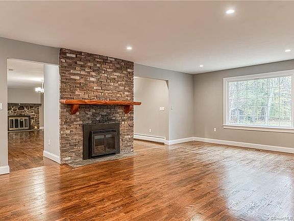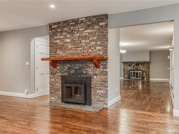 Welcome to 121 Rimmon Road in Woodbridge, CT. This charming 1930's colonial is a mix of classic charm with modern amenities. With 3 bedrooms and 2 1/2 bathrooms, this home has over 3000 sq.ft. of renovated space. The front door opens to a formal living room with refinished hardwood floors and a beautiful brick fireplace. Walk through the formal dining room and breakfast nook and you enter the star of this home, the remodeled kitchen The first thing you notice is the large island with an amazing quartz waterfall countertop. New cabinets, stainless appliances, and hardwood floors give this space an inviting, fresh feeling. There is a half bathroom and large office/den space that can be used as a first floor bedroom. An additional first floor great room with hardwood floors, wood burning fireplace and doors that lead out to the screened in porch complete the main level. Upstairs, you'll find three bedrooms, and two full bathrooms including the sizable master with a gorgeous ensuite bath and two separate closets with built in shelving. Outside, there is an oversized patio overlooking the 4 level acres of both yard and woods. There's plenty of room to work from home, entertain or just relax after a hard days work Come by and take a look Be sure to check out the video walk-through