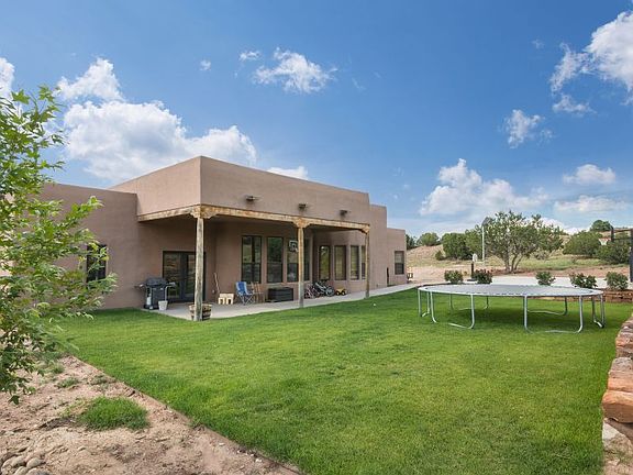 Lovely newer home just minutes south of town. Located on a cul-de-sac, this home is on a large lot with ample space on all sides. This elegant home features tall ceilings with vigas, fireplace with a handmade custom mantle, tile floors, plastered walls, arches and an open floor plan. The portal is accessed from the living space allowing for great outdoor entertaining. The kitchen features stainless steel appliances, granite countertops, an island and a generous pantry. The master bedroom is removed from the other bedrooms and has an en-suite bathroom, with a large shower, double sinks and jetted tub. Custom cabinetry and custom solid doors.