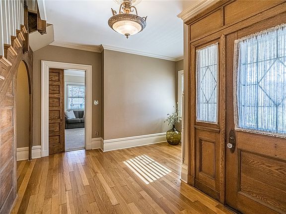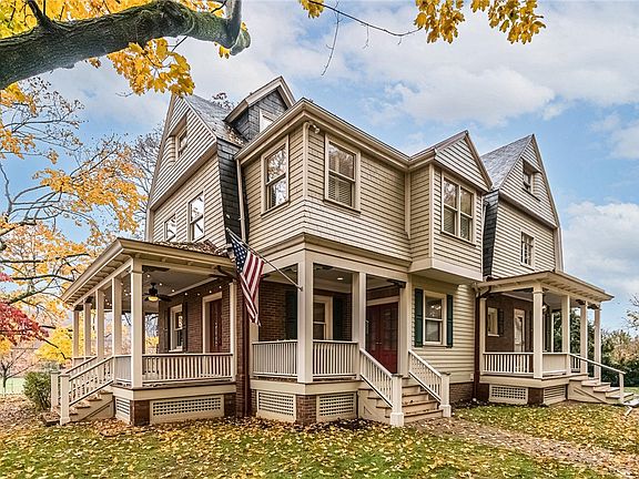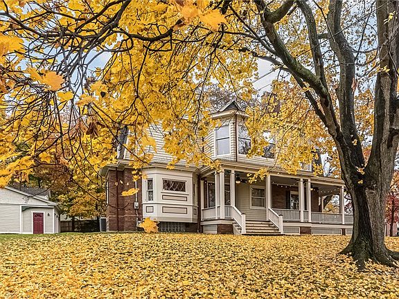 Exquisitely renovated historic home presides in a prominent riverfront location. This century old Victorian beauty is hallmarked by timeless details blended with modern features. Inviting wrap around porch, magnificent woodwork, 5 fireplaces and brilliant architecture are sure to capture the senses. Chef inspired kitchen complete w/Stainless Pro Appliances, granite countertops and center island. Original pocket door separates the living and formal dining space. Convenient first floor mud room and laundry. The owner’s retreat is replete with a luxurious en-suite featuring radiant heated floors and towel bar, steam shower, jetted tub, granite top vanity and oversized walk-in closet. 2 additional bedrooms, guest bathroom and sun-filled living room/den complete the second level. The third floor features an additional bedroom and bonus room flexible to your needs. Spacious corner lot, 3-car detached garage and only steps to the Village make this graceful property a unique and rare offering.