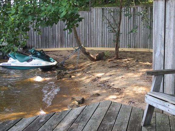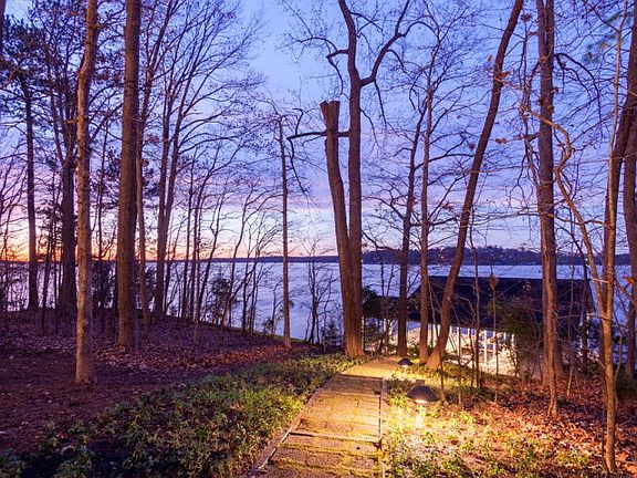 Best sunset views on Lake Gaston. Domaine du Lac is gated, secure & very private setting on 2 lots w 470' main lake waterfront & sandy beach area (366' is bulkheaded) in one of the most sought after subdivisons. Chefs Kitchen with Thermador gas cook top in a large work island surrounded by lots of work spaces and cabinets,Thermador Microwave & Convection Oven. Breakfast area and dining over look the Lake. Separate pantry which leads to the housekeepers quarters w/outside entrance & full bath. Large tiled solarium w/sitting areas & pool, office, study, sun porch & guest suite w/two large bedrooms, living room & shared bath are on this level.The master suite is up a sweeping curved staircase on second level. Two car garage. Oversized boathouse w/storage and room for 3 bays.Mature landscaping and lighted walkways for the nature lover in you. Community boatramp. 1096 sq ft of outside decking
