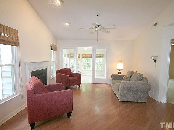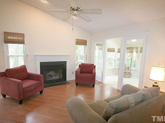 The perfect one story end-unit townhouse in Cary! Open Floor Plan. Cathedral ceilings in living and dining room. All windows replaced in 2014. Front porch great for your morning coffee and you will love the inviting Sun room w/New Carpet and lots of windows. Kitchen is cozy with a front window breakfast/cafe area. Split bedroom plan with two full baths. Mstr Bath has new vinyl. Wood-burning fireplace in living room and large delightful dining room. A well-maintained community.