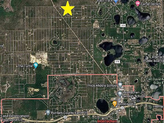 This is a rural high and dry 5 parcel property located 3 miles north of State Road 20 in Interlachen. It’s on a county maintained graded road, is partially cleared and 110’wide x 220’ deep. It was surveyed last year with the tops of the survey stakes exposed at the corners. The property is completely fenced with a 12 foot main gate on the North or Rome Avenue side and a 4 foot gate on the East or College Street side. The 2022 taxes were $90.02; Zoned R-2 for mobile or site built homes Please call for gate code. Overhead power lines are 160 feet away and conversations on 1/10/2023 with the engineering dept. at the power company revealed and confirmed that there is no charge to bring power to the property. That documentation is available upon request.