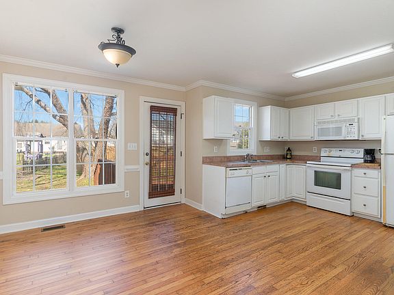 Great One Story Ranch with a Covered Wrap Around Porch. Perfect sized lot to enjoy! Living Room has Natural Gas Fireplace and Cathedral Ceiling. Kitchen is spacious with Pantry and Desk Area. Large Primary Bedroom with Cathedral Ceiling and Walk-in Closet. Primary Bath has Whirlpool Tub and Separate Shower. Double Vanity. Deck for Relaxing. Storage Building. Convenient to Hospital, Schools, Parks and Downtown Clayton. Must see!