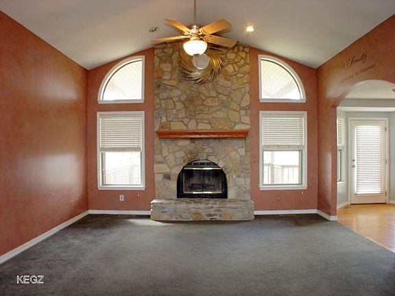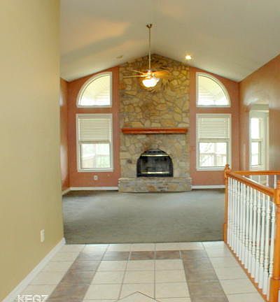 This spacious southern style front porch with white columns is ideal for rocking chairs and relaxation. A large landscaped corner lot and side entry garage gives this 3+ bedroom, 2 bath home great curb appeal. Main living with vaulted ceilings and stone fireplace, nicely sized kitchen/dining combo, master suite with double sinks, jetted tub, step in shower and walk in closet. Full walkout basement with 2nd living area, office area, and a 4th bedroom or bonus area. Huge storage area with shelving plus a John Deere room with exterior double doors. Oversized lot. This home is SOLD AS IS. Fresh paint, flooring and some finishout in the lower level will make this one great home. Popular Branson neighborhood with children's play area.