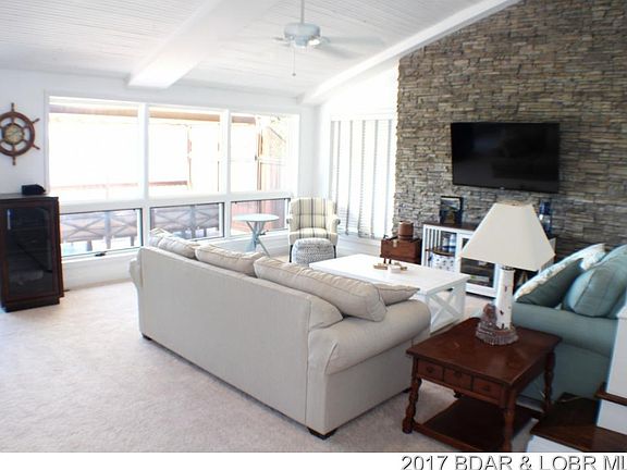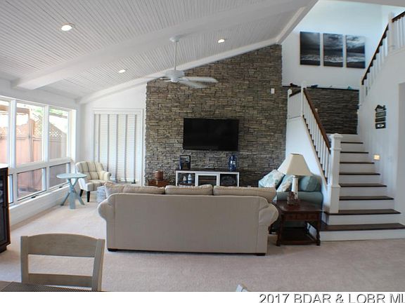 Outstanding waterfront home. You'll appreciate the location on Friday night as you turn off Hwy 54 and have only a two minute drive to your lake home,you'll feel the work week stress melt away when you open the door and walk into a bright open freshly renovated home with expansive view,large waterfront deck. New flooring paint, stack stone fireplace an expansive feel with vaulted ceilings and beautiful wood entry and so much fun you'll cry when you have to leave. Dock and two car garage add to the pluses. Don't worry about getting down to the dock there's a cart path and the lakeside fire pit is a great evening gathering spot. Lake living at it's best Call today and start your lake life