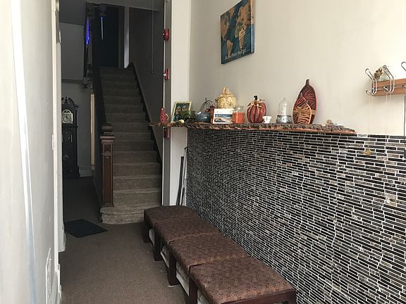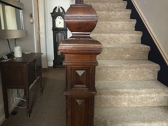 Located close to everything, this spacious home has 5 large bedrooms and 2 and a half baths on 3 floors! Lots of original woodwork including hardwood floors, a pocket door from the living room to the dining room, and a stately hickory staircase open to the third floor. Each floor has it's own bath and all hall accessed bedrooms. Large basement for future rec room or man cave. Hardwood floors in living room and dining room, new carpet on stairs, hallways and one bedroom. Bilco doors to basement from exterior as well as interior access. Economical gas heat and gas fireplace . Commercial grade fire and security alarm system. Within walking distance to shopping, post office, pharmacy, hospital, park and much more.