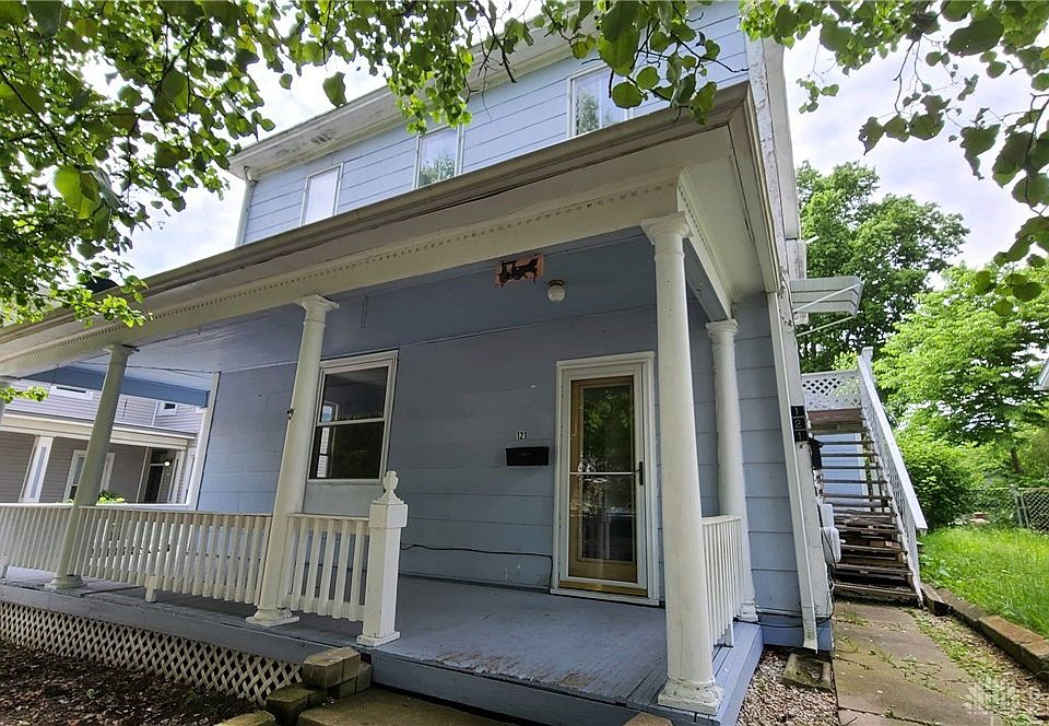 Perfect duplex investment opportunity in downtown Eaton! Each unit has 2 bedrooms and 1 full bath and freshly painted. The downstairs unit has a living room, family room, eat-in kitchen with refrigerator and range. There is a bedroom downstairs and one upstairs. There is also a large shed in the back yard, extra storage room on rear of home, fenced in back yard, off street parking and a great front porch for relaxing. The upstairs unit has a living room, kitchen with range, washer and dryer and two bedrooms. The downstairs unit had rented for $750/month and the upstairs rented for $615/month. Each unit is metered separately. Great investment opportunity!