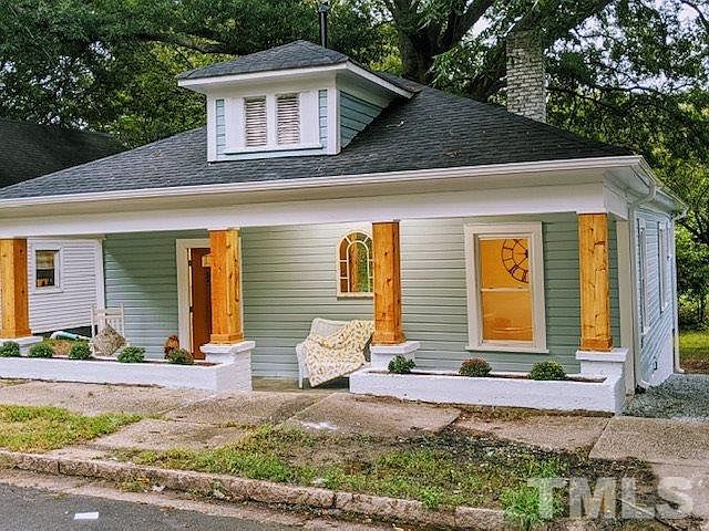 Handsome & unique Old East Durham Craftsman Bungalow. Covered front porch with new Cedar gables & poured concrete floor + planter boxes. Original antique doors & moldings. BIG rooms. Flexible Dining & Kitchen space. Cozy carpeting in the Living Room & Bedrooms. New Roof. Remodeled Kitchen * Bathroom. Deep backyard will allow extending the home, adding a deck &/or Accessory Dwelling Unit. Seller offers $1,000 in Closing Costs. Big, beautiful Live Oak Tree out back. Close to services, highways & Downtown.