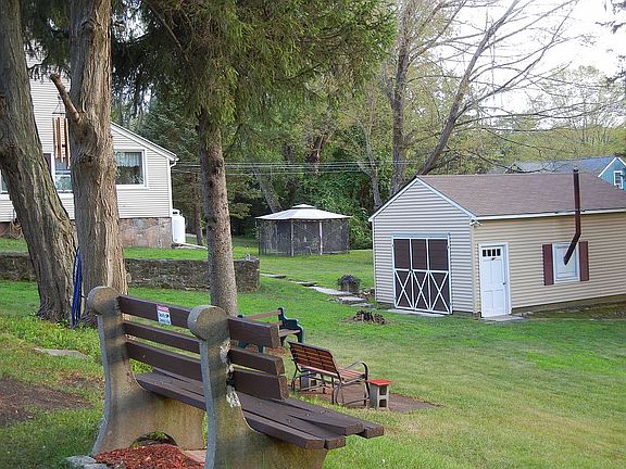 updated farmhouse with replacement double-paned thermal windows, new architectural roof put on in 2011, garden shed 10'x12' and also a 16'x25' garage space with electric power and wood stove making it perfect as a potential work space or workout area--many possibilities! Front yard is partially fenced. Located in the scenic town of Durham, CT, this home has been shaped into a beautiful escape complete with a back deck, patio, fire pit area, maintenance-free air jet bath tub for two, two gas fireplaces(in living room and master bedroom) and large upper walk-in closet. This home has a well and septic system and is heated with a combination of oil and propane. House and buildings are covered in durable vinyl siding and are suitable for your storage/recreational needs. Enjoy privacy and be within walking distance to town center's popular attractions (Durham Fair, Dari Serve and local restaurants). Only a 30 minute drive to New Haven and Hartford. *Willing to Co-broke.