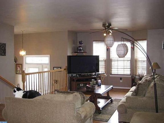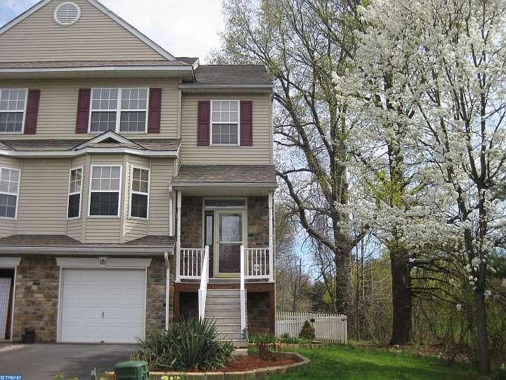 Welcome to this beautiful three story twin home located in the BEST location (last of the row!) of a quiet cul-de-sac. You'll feel immediately at home when greeted by the open floor plan, huge living room and dining area. Gleaming newer laminate flooring found throughout. Large bright kitchen with open breakfast room. French doors lead to a beautiful spacious deck overlooking fenced yard and expansive tree lined views. Laundry area and powder room conveniently located on this main floor. Upstairs are three generously sized sunlit bedrooms with hall bath. Master bedroom complete with master bath, walk-in closet and cozy sitting area. Walkout lower level is finished to allow for additional family room, office space, exercise area....options abound! One car garage. Excellent location to Rt 309, PA Turnpike, Shopping and the fact that there are NO association fees put this home at the top of the list!