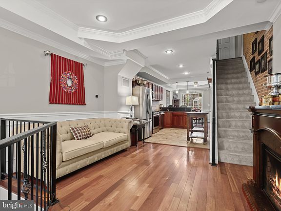 Situated in the heart of the city, this brick exterior colonial offers the epitome of urban living, within walking distance to M&T Stadium, Camden Yards, the Inner Harbor, and an array of entertainment, dining, and shopping options. Step into the main level to discover an open-concept living space featuring a living room adorned with box wainscoting, a tray ceiling, recessed lighting, and crown molding. The adjacent dining room, complemented by a chair railing, conveniently connects to the kitchen, providing easy access to the fenced patio for seamless indoor-outdoor entertaining. The kitchen is appointed with a decorative backsplash, breakfast bar, stainless steel appliances, and granite counters, creating a stylish and functional culinary hub. Ascend to the penthouse level to find a luxurious primary bedroom suite, complete with carpeting, a walk-in shower, and a soaking tub for ultimate relaxation. Two additional bedrooms and a hall bath with a jetted soaking tub round out the upper-level sleeping quarters. The lower-level family room offers ample storage and endless possibilities for customization. With major commuter routes including I-96, I-83, and I-695 nearby, this home combines convenience with metropolitan charm for an unparalleled urban lifestyle. Updates: Refrigerator
