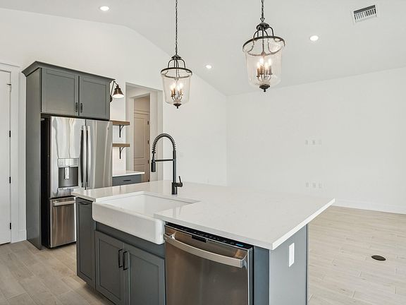 This beautiful home is move in ready! It is a Main Floor Primary Suite with a gourmet kitchen. covered lanai and home office downstairs. Upstairs has two bedrooms, a full bath, and spacious loft. This home is styled with our modern Farmhouse Look. The is a showpiece with Grey cabinets, Statuary Quartz countertops and center island, with plank tile flooring throughout. Great room & dining area feature vaulted ceilings. There is also a large, covered lanai for enjoying outdoor celebrations, Elegant primary suite with ensuite frameless shower enclosure and walk-in closet are a perfect retreat. Upstairs is an oasis with two bedrooms, a loft and a full bath.