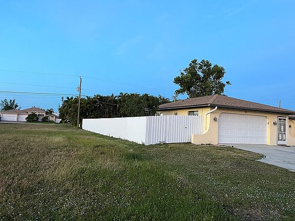 Beautiful SW Cape 3/2 home with City Water and Sewer In and ASSESSMENTS PAID IN FULL and NO FLOOD ZONE for less than $200,000! NEW Hot Water Heater in 2016. 30 year Roof replaced in 2004. Garage Door replaced 2013. Plumbing re-pipe 2011. New kitchen with granite countertops and stainless appliances! Vaulted ceilings! Master bedroom and Master bath shower is huge! HUGE Lanai with outdoor granite kitchen! Circular drive for easy access in and out. Mature fruit trees in the spacious backyard include fruit bearing mango, papaya and kumquat trees. Fenced in yard! Large shed. Plenty of room for a pool! Quick access to Santa Barbara close to all restaurants and shopping! Make offer!