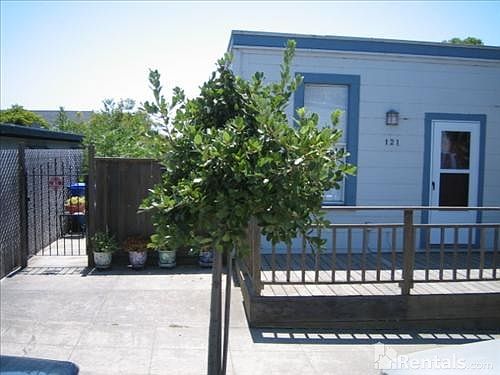121 Santa Fe is a tri-plex that was built in 1910. Unit A is a very nicely refurbished 1.5bd 1ba 675 square foot unit. The rectangular layout is slender and long with a large living room, and a bedroom, encompassing the left side of the building. The front door leads to a medium-sized front patio, and an iron gate which faces a beautiful restored home (built in 1901) across the street. As you walk in the front door, you'll enter a large living room with a high ceiling that extends to your right. When you turn left, you'll see a long narrow hallway that extends all-the-way to the back of the unit. As you walk down the hallway, you'll pass a small kitchen area. Continue, and you'll enter the first bedroom containing a small closet, and a door to the bathroom. The small bathroom has a shower (no tub), sink and toilet. As you continue through the bedroom, you'll enter the 1/2 bedroom in the far back of the unit, which also has a small closet. One block away is the tiny historic town of Point Richmond, where you will find a variety of restaurants, coffee shops, and art stores. During the evening, you have your choice of watching a play at the little 50 person Masquer's playhouse, or listening to some quality live music at the old Baltic bar restaurant. There is also a Starbucks and other wonderful restaurants and shops - all about 1 block away. About 1 mile away are the Point Richmond hills (seen in the office view below) which contain a maze of trails though which you hike and enjoy fantastic 3 bridge views (Golden Gate bridge, Richmond-San Rafael bridge, and Bay Bridge) Wonderfully sweet neighbors are on all sides. A very nice K-6 school is 3 blocks away. A bus stop is 1 block away (15min ride to BART). For more information about Point Richmond, see http www.pointrichmond.com/ Applicants must have clean credit and no criminal record.