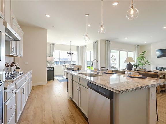 Featuring a thoughtfully designed single-story layout, the Plan 1 Alt offers an abundance of open-concept areas for your family and friends to gather, plus the convenience and functionality of a secondary one bedroom, one bathroom unit with it's own kitchenette and separate entrance! As you enter the home, you'll be impressed by the wide open entry and 10 foot ceilings, as well as the versatile flex room that could also serve as a study or office. The great room overlooks a well-equipped kitchen--featuring a spacious island, a stainless steel Whirlpool® suite of appliances, granite countertops, and a walk-in pantry. The dining area provides direct access to the covered patio and backyard. The lavish owner's suite--nestled in the back of the home for maximum privacy--showcases a large walk-in closet and deluxe private bath with dual vanities, soaking tub, and shower with cultured marble surround. All of our homes include a tankless hot water heater and Century Home Connect smart home package. The two-bay garage includes textured and painted finished walls for your convenience. Solar is also included on every home at the Promontory at Ridgemark and can be either leased or purchased. Options may include:Owner's suite free-standing soaking tub12-foot sliding WinDoorSliding door at owner's suiteConcret