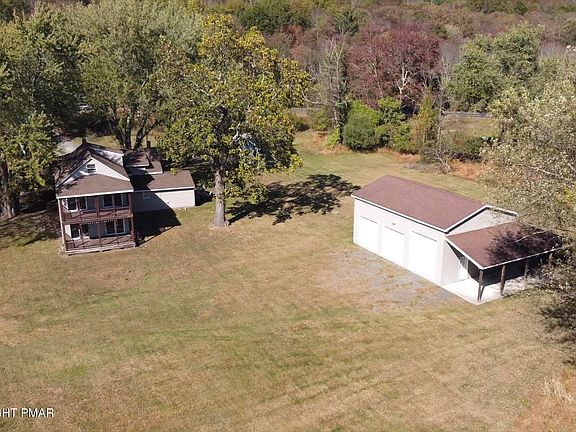 This two family farm style house has two separate electric meters and is currently a long term rental with one side currently occupied by a month to month tenant, (Smithfield Township does not allow Short Term Rentals). This property also features a three RV Garage with a hot tub on the rear patio. The pond is located across the street from the house with a large water front lawn. The back yard borders the local recreational airport, large lush lawn and flat, very rare in the Pocono Mountains.