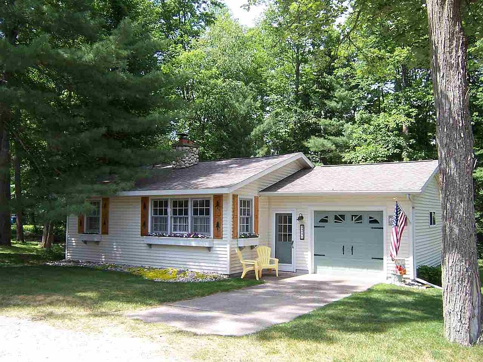 Higgins Lake, PRIVATE ASSOCIATION WITH BOAT MOORING!! 100' of sandy beach and a shared dock allowing two boat spaces in Big Creek Lane Association, a small group of 17 members. Membership dues only $225 per year providing dock in/out, insurance, and snow plowing of road. A beautiful, recently updated home for year round or seasonal enjoyment. Two bdrms, one bath. Living room with wood burning fireplace, vaulted ceiling, and open to the newly installed kitchen with new cabinets, all new stainless steel appliances, and flooring. The highlight of the home is the four-season room custom built in 2018 by Vinyl Sash of Flint Inc. Full cathedral ceiling and walls of glass showcase the beautiful treed back yard. This room has a separate heating and air conditioning unit. A patio door leads to the rear deck, brick fire pit, garden shed, and very private yard. Additional updates include new roof shingles (home, shed) in 2019, new Generac generator (2019) including updated wiring, new breaker box. Washer and dryer conveniently located in closet. Attached one-car garage offers lots of storage in addition to a vehicle or boat. A picture perfect house with window boxes of flowers, offering eye-catching curb appeal. A home anyone would be proud to own and enjoy! NOTICE: ALL Buyers attending a showing must sign SHOWING CERTIFICATION and RELEASE PRIOR to showings. All attendees are required to wear facial covering. All attendees should avoid touching all surfaces. Please remove shoes or wear shoe coverings. Once showing is complete, showing agent to sanitize all light switches, door handles, lock box, etc (anything that was touched). Finish showing with extended conversation(s) outside.