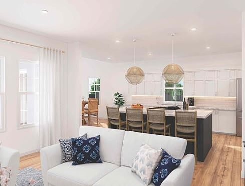 The Metedeconk offers an open living space on the first floor with an owner's suite option. Other features include a basement, two car garage, front porch, and 10' ceilings throughout the first floor. Beautifully appointed gourmet kitchens will feature 42" white shaker cabinetry, stone countertops, stainless steel appliances, and generous center islands. Luxurious bathrooms will feature sleek Carrara look porcelain tile, large double vanities, freestanding soaking tub, and separate stand up shower.