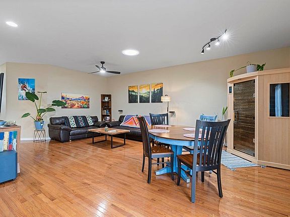 This beautifully designed townhome offers the ease of single-level living with a spacious open floor plan and nine-foot ceilings, creating an airy and inviting ambiance. Hardwood floors flow through the living, kitchen, and dining areas, adding warmth and sophistication, while a skylight in the living room brings in abundant natural light. The well-appointed kitchen features stainless steel appliances, a walk-in pantry, and a new deep contemporary stainless steel sink with an RO water system for added convenience. The light-filled primary bedroom includes a generous walk-in closet and direct access to an en-suite bathroom. On the opposite side of the home, you'll find a second bedroom, a bathroom with a walk-in shower, and a separate laundry room. Both bathrooms and the laundry room have tile flooring for durability and style. Enjoy outdoor living on the large private front covered porch and fenced concrete back patio, enhanced by a newly added stone walkway in the backyard. The oversized one-car garage provides ample storage and parking, with an additional parking space next to it. Recent upgrades include a kitchen sink with a under sink RO, tankless water heater, new light fixtures, ceiling fans throughout, a stylish front glass screen door and garage door opener. Located in Three Springs, a vibrant community known for its parks, trails, and scenic outdoor spaces, this home offers direct access to an extensive trail network, perfect for mountain biking and hiking enthusiasts. Don't miss this incredible opportunity to own a home in one of Durango’s most sought-after neighborhoods!