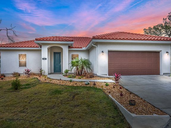 This high demand home will sell fast- don't wait! You will be in awe of this beautiful new construction home in exclusive Pelican Reef gated community right off A1A and minutes from historic Downtown St. Augustine. Premier location close to the beach on breath taking Anastasia Island. Pelican Reef community offers an exclusive dock to residents and boat slips with lifts for low monthly fee- amazingly easy access to the intracoastal waterway and perfect for the boat lover. Notice the meticulous landscaping, mature palms and spacious lot as you approach the home. The Spanish tile roof adds style and will last much longer than a shingle roof. No expense was spared in this luxurious home! Upon entering you are welcomed into a large, open concept kitchen/living combo. The kitchen lies straight ahead and boasts so many must-have features- beautiful gray granite countertops, white shaker cabinets with soft-close drawers, all new stainless steel appliances, mounted microwave and two pantries with custom shelving. Bar seating at the expansive kitchen island and dining nook off the front entry is a great place to gather family and friends. The kitchen flows seamlessly into the enormous living room, featuring an electric fireplace as the focal point of the space. Beautiful, yet durable luxury wood-look vinyl flooring runs throughout the home. The primary bedroom to your right greets you with large windows letting in tons of natural light and a breathtaking view of the lake. The ensuite bathroom flaunts a double vanity with granite countertop, an extra large walk-in shower with rainfall showerhead, your dream closet with fully customized built-in shelving and separate water closet. This three-way split floor plan has one bedroom and bathroom towards the front of the house and two more at the back. The guest bathroom has a standing shower with rainfall shower head and granite vanity. Towards the back of the house, there are two more spacious bedrooms with custom closet shelving and a large bathroom with shower/tub combo. A sliding glass door ushers you outside where the covered lanai provides ample space for an entertainer's outdoor dream space as you overlook the lake. The handsome, precise landscaping will grab your attention as you enjoy the awe-inspiring views! The home sits 10 feet above the lake in this high elevation lot. Buyers will get to choose the chandelier of their choice for the dining nook. All windows are hurricane impact rated. Irrigation system installed. Nearby: Shopping at the St Augustine Outlet Malls, Downtown St Augustine and the Castillo de San Marco Fort, and Anastasia State Park, Easy access to I-95. Buyer to verify all information.