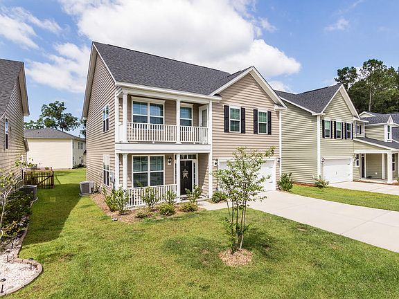 Welcome to this immaculate family home in beautiful Moncks Corner! Immediately, you notice the gorgeous front facade which features a two-story covered porch. As you enter through the front door, the amazing open floor plan allows you to view the entire first floor of this elegant home. This home is equipped with beautiful light fixtures that accentuate the quality hardwood flooring. The bright living room area is expansive and transitions into a free-flowing kitchen that features a built-in center island with breakfast bar, spacious cabinets, and stainless steel appliances. There is a large laundry room and half bathroom conveniently located on the first level.