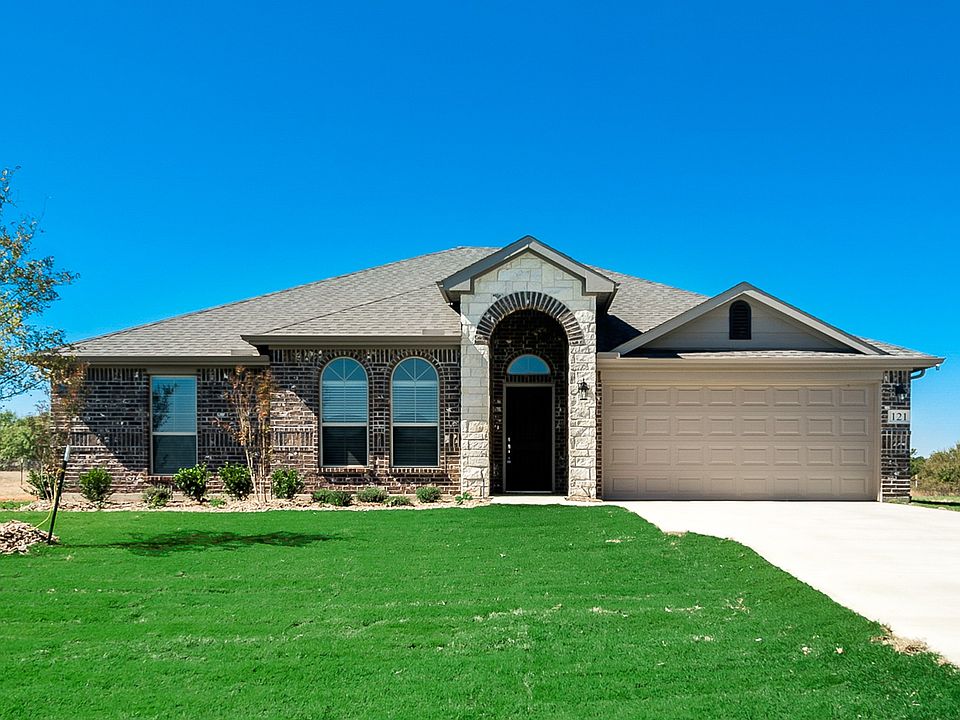 This gorgeous home sits on a 1 acre homesite! Features include a 4th bedroom or study option left of the foyer that opens to a large family room. Open to the large family room is an island kitchen that includes plenty of counter space plus stainless steel appliances and a breakfast room. The master bedroom suite has a private bath that includes a large walk-in closet and huge shower. The covered back patio makes this single story new home a no brainer!
