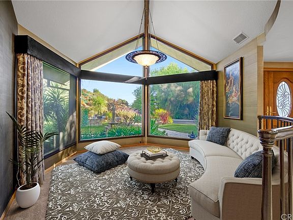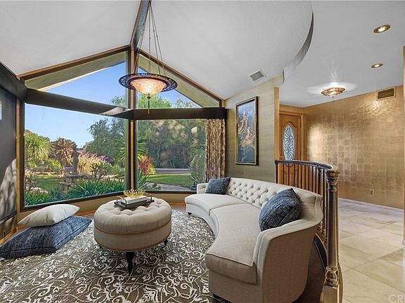 A rare offering of this custom single-level estate located in the prestigious community of Bell Canyon. The carefully planned indoor/outdoor relations of the architecture brings a true connection to the Bell Canyon lifestyle. From the moment you enter you are immediately struck by the floor to ceiling walls of glass that flood the house with natural light. The custom construction offers high quality finishes, unique architectural elements, and vaulted ceilings throughout creating a true sense of space and volume. Entertaining elements include a sit down wet bar, sunken indoor fire pit with 360 degree seating, and the radius-walled living room with floor to ceiling windows that take in the natural surroundings. The gourmet center island kitchen offers stone counters, custom cabinetry and high end stainless steel appliances. The secondary bedrooms are generous in size. The massive Master Suite offers the perfect retreat from the daily grind complete with separate His and Hers walk-in closets, spa-like master bath, all warmed by the romantic fireplace. Above the garage is a huge bonus room that can be transformed into an in-laws apartment, home office, or private game/media room. Outside you will find a great entertainer's backyard complete with custom rock-trimmed pool and ample patio area that provides the perfect space to relax and enjoy the serenity of the amazing lush gardens. If you are looking for a single-level, custom estate with a resort-like setting, look no further!
