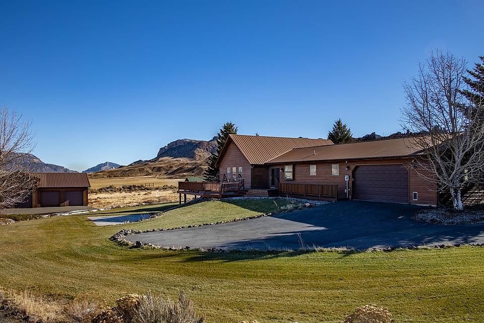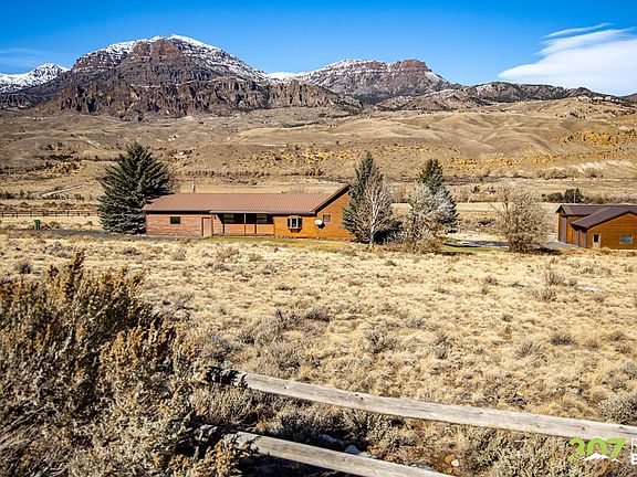 Stunning Wapiti Valley views! Just 20 min. from Cody, 45 min. to Yellowstone National Park. Landscaped yard, mature trees. Good well and paved drive. Insulated/heated shop can accommodate a large RV and all your toys. Strong vacation rental history in a very desirable location. Come check out this special property!