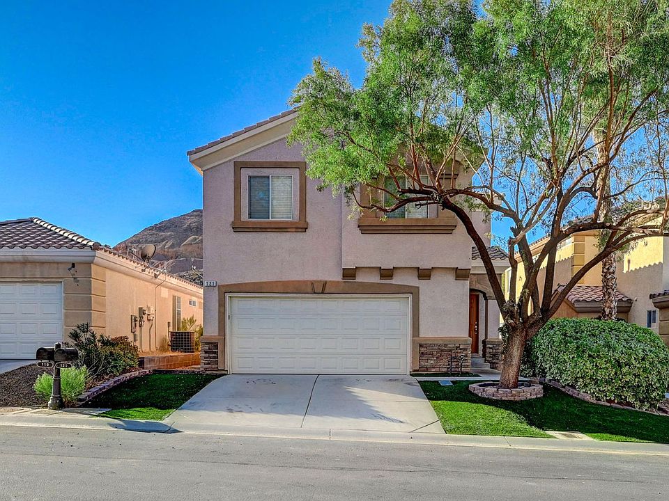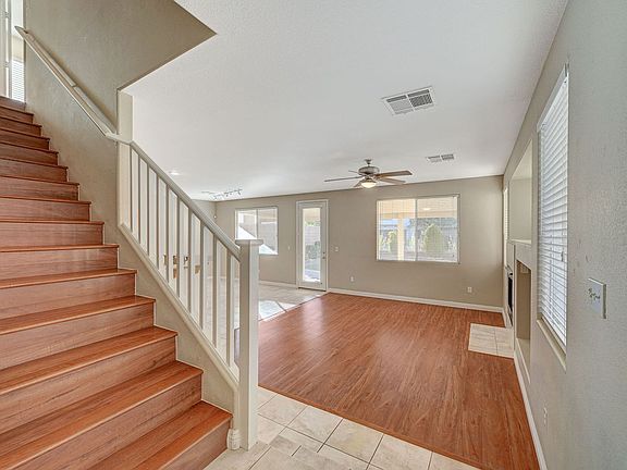 Kitchen features granite counters, tile backsplash, wood cabinetry, pantry, recessed lighting and all appliances. Upstairs primary suite with walk in closet and bathroom with double sink vanity, tub with jets, walk in shower and makeup table. Spacious secondary bedrooms with closets. 2 car garage. Spacious backyard with brick pavers, artificial grass, and covered patio. Rhodes Ranch community includes water park, fitness center, clubhouse, beach volleyball, tennis and basketball courts, waterscaping, etc. Ideal southwest location near shopping, dining, parks, and schools!