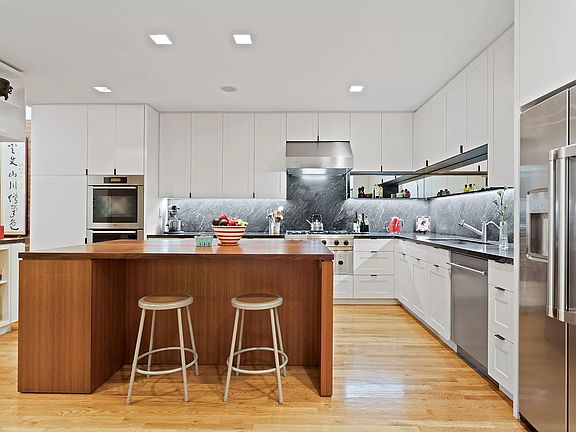 Extraordinary space, luxury and privacy abound in this expansive and meticulously renovated duplex apartment, larger than a townhouse with over 4000 sf of interior loft-like space spanning 2 floors of a boutique condominium. Ideally located on a tree lined block in Park Slope just a few blocks walk to Prospect Park, this exceptional 4 bedroom residence, with 3.5 baths, offers outstanding living spaces on a grand scale including a media room, den and/or playroom, chefs kitchen with incredible walnut island, double wall ovens, warming drawer, 2 refrigerators, an extra large food pantry to keep you well stocked, and a unique sliding wall designed to delineate the kitchen from the dining area. Many options for you to create your ideal work from home scenarios, including an accommodating 75 ft bonus room (currently used for storage). Charming exposed brick walls, beautiful hardwood floors and a magnificent 12 ft mantle with a modern wood burning fireplace create a warm and inviting atmosphere while 20 ft wall of south facing windows keep it light and bright. Primary bedroom with en-suite bath is a private respite boasting high end finishes, 25 linear feet of custom closets and an additional custom walk-in closet. Spacious second bedroom with entry to the upper terrace. Architecturally stunning black steel and walnut floating staircase allows for easy access to the sprawling lower level complete with full laundry room, 300+ bottle temp controlled wine closet, thoughtful storage, and a large beautiful and secluded patio oasis. 4 zoned Geothermal heating/cooling provides environmentally conscious comfort. This home is situated on the 1st floor and garden level of a pet-friendly, 10 unit boutique condo and is perfectly designed to meet all of today's needs for a modern comfortable lifestyle. There is no location with a quicker commute to Manhattan in Park Slope, as the Q and B stop at 7th Avenue is conveniently located around the corner. And of course, don't miss the opportunity to walk easily to every world-class amenity under the sun including Prospect Park, the Berkeley Carroll school, the Green Market at Grand Army Plaza, the Brooklyn Public Library, the Botanic Gardens. Rarely does a home of this size and caliber come to market in this area. Make your appointment to view it today!