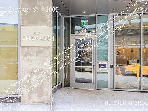 Experience urban living at its finest in this stunning 1-bedroom Seattle home. Enjoy sleek wood flooring throughout and floor-to-ceiling windows framing breathtaking downtown views. The modern kitchen features stainless steel appliances and ample storage, while the bedroom includes a spacious walk-in closet. In-unit laundry adds everyday convenience. The building offers an array of amenities, including a rooftop deck with indoor/outdoor lounge spaces, a fitness room, dog washing station, 24/7 concierge, and more. $150 flat fee covers water, sewer, and garbage.