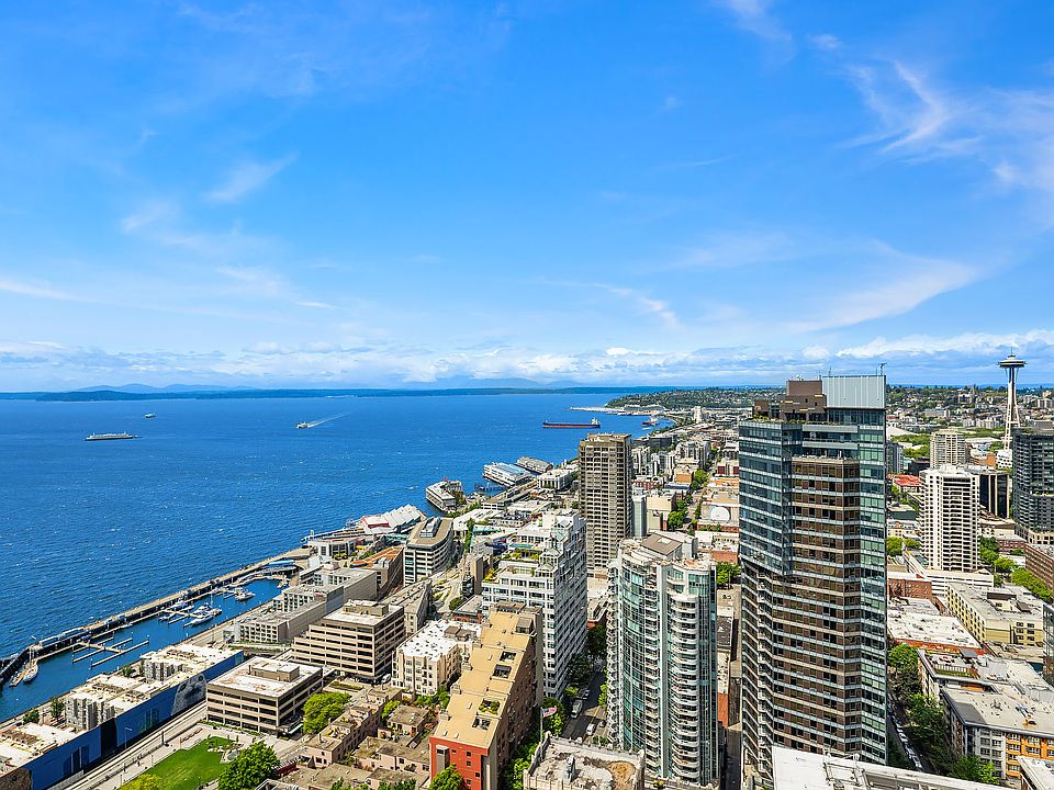Live in luxury at The Emerald, Seattle's premier high-rise just one block from Pike Place Market and two blocks from the waterfront. This beautifully designed 1-bedroom residence features custom wood cabinetry, wide-plank hardwood floors, full-size washer/dryer, Latch keyless entry, and floor-to-ceiling windows with a peekaboo view of the Sound. Residents enjoy top-tier amenities including a fitness center, yoga studio, pet run and spa, guest suite, onsite electric carshare, and an impressive full-floor rooftop lounge with indoor/outdoor spaces and panoramic views of the Sound, Mt. Rainier, the Olympics, and the city. Unmatched location, modern finishes, and resort-style amenities welcome to the best of downtown living. W/S/G included in rent.