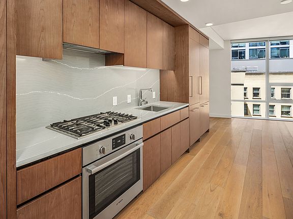 Wide-plank hardwood floorsFloor-to-ceiling windowsLatch keyless entryCustom wood cabinetry