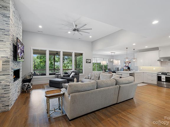 Gorgeous transitional craftsman style home situated on a full acre in Robinson Creek with an active running creek & beautiful mountain views! Immaculately maintained, this two-story plan offers an open concept main level boasting a fabulous kitchen - Bosch appliance package with natural gas range, granite countertops & breakfast bar, spacious great room with stone gas fireplace, dining area & the primary retreat with ensuite. On the lower level, you'll find a 2nd primary bedroom & 2nd large family room/flex space, dedicated laundry room & bonus room. Additional bonus room on lower level can be used as 4th bedroom or office/exercise room. Hardwood floors, ceramic tile & large walk-in closets in all bedrooms. Enjoy your morning coffee or evening wine & the amazing views from a covered porch on either level! Extra room under the garage can be used as a workshop. Home features tons of storage & too many features to describe. Located just 3.5 miles from all of South Asheville's amenities!