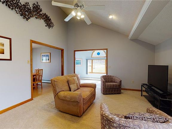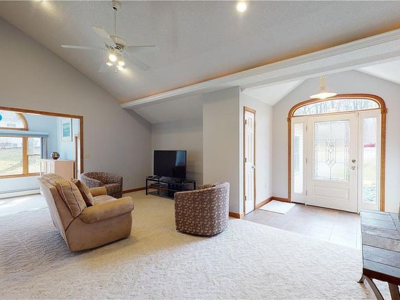 Bright and open layout are found in this updated ranch with 3 bedrooms and 2 full baths, interior was just repainted 2020. Living space is great with front living room that opens to sunny family room, mudroom and the kitchen. The kitchen was just renovated (2017 with new white cabinets, granite counters and SS appliances, nice size island and good size eat-in area to large sun room. The sun room has plenty of space for eating and entertaining and opens to the deck and yard. Down the hall is the master bedroom with full bath, two additional bedrooms and hall bath. The lower level is partially finished with large closet and plenty of storage area, furnace replaced in 2013. Location is great, not far from the lake, on a cul de sac and the 1 1/2 acre lot is level and private.