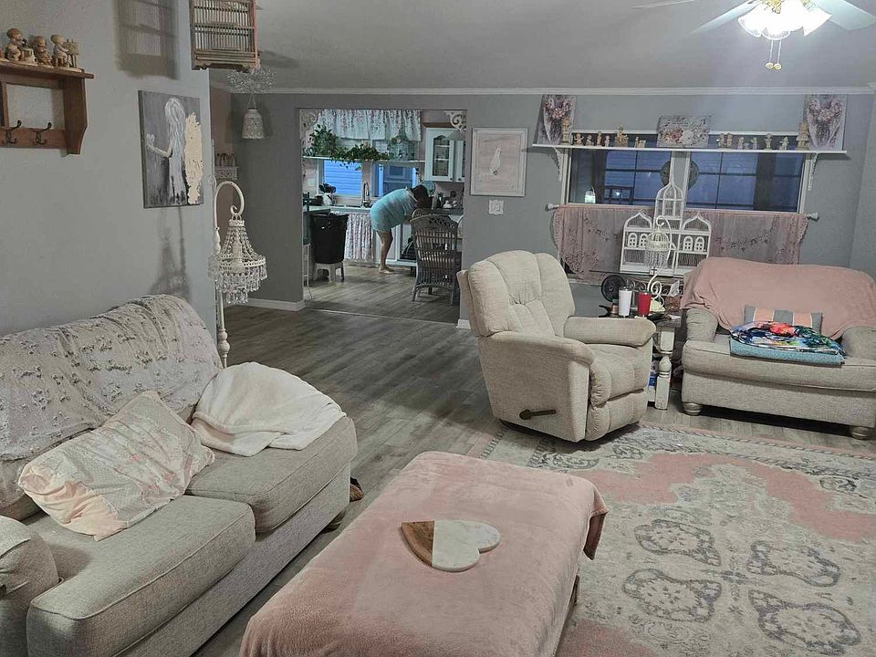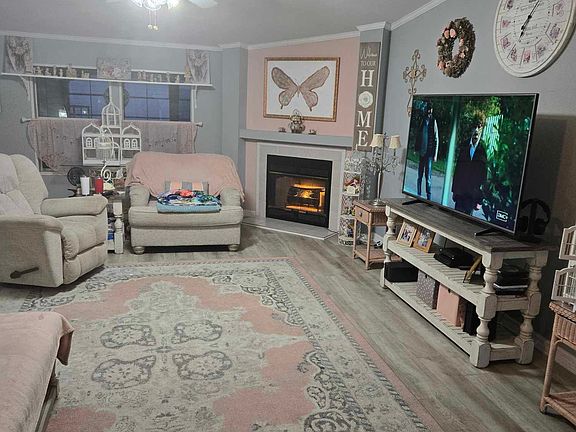 55+ community. Relatively new flooring in living and dining rooms and all 3 bedrooms. Roof is one year old. Triplewide house with large kitchen. Very large walkin closet in master bedroom. Split floorplan. Very large Master bedroom with large master bathroom. Electric fireplace.