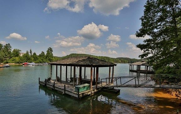 Now this is a deal!**BANK APPROVED Short sale**AS IS**Located minutes from the resort-style amenities at the Village Center * Easy access via golf cart, car or boat * over an acre of wooded waterfront * gentle slope to the lake???s edge * estate like setting * 3866 SF of bright, easy flow living * four bedrooms (one currently used as a study) * four full baths, stunning Brazilian cherry???cumaru??? hardwood floors * plentiful windows allow nature & natural light to permeate the home * thick cherry wood cut in a unique shape graces the custom island countertop * large master suite opens to a private lakeside balcony * wood decking on private dock * boatlift in place, plantation shutters * large dining porch * well thought out California Closet systems in master as well as storage areas * secluded guest quarters complete with private entrance, dedicated water and HVAC systems, coffee bar & full bath