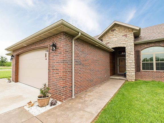 Better than new! IMMACULATE all brick home on over 3 acres built in 2015 with an open floorplan, gorgeous hardwood floors, granite counters, tons of kitchen cabinets and counterspace, stainless steel appliances, gas fireplace, large master suite with walk-in shower, oversized walk-in closet adjoining the laundry/mud room, formal dining room could be used as office, guest bedroom with its own private bath, covered patio, and a large outbuilding with electricity ready for your machinery/projects! Located 20 minutes to Springfield, and 10 minutes to Ozark!! Must see to appreciate!