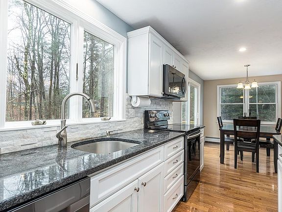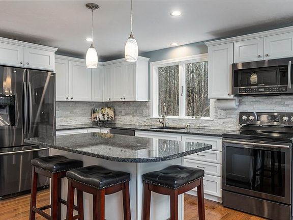 Welcome Home - Be in for the holidays! Looking for some privacy? Tucked away in the woods, yet close to amenities. This sunny home is well maintained, comes with 3 bedrooms,2 baths and features a Large open concept living room. An updated kitchen w/stainless steel appliance, recess lighting, breakfast bar, dining area and living room with shinny hardwood floors and center fireplace. Also, on the main level there is a modern Full bath with laundry and First Floor Bedroom, 2 further bedrooms upstairs with ample closet space. Bonus area for Reading Nook/Study/Play area. Surrounded by natural setting and a sizable yard! Wildlife abounds here! Enjoy the Farmers Porch & deck. Great for Entertaining, Bring your toys!!!