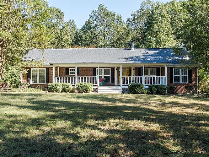 121 Triple Crown Run is located just north of Wake Forest. Drive the private tree lined drive to this beautiful 3 bedroom and 2 bath brick ranch. The home sitting on a wooded 2.65 acre lot boasts newly refinished hardwood floors thru-out, cozy living room with a wood burning stove, open family room with a gas log fireplace, updated kitchen with stainless appliances and granite prep island and spacious master bedroom with elegant master bath suite. Enjoy afternoons on the front porch or the expansive back deck overlooking the pond. Easy access to Raleigh and Wake Forest! Home Warranty provided.