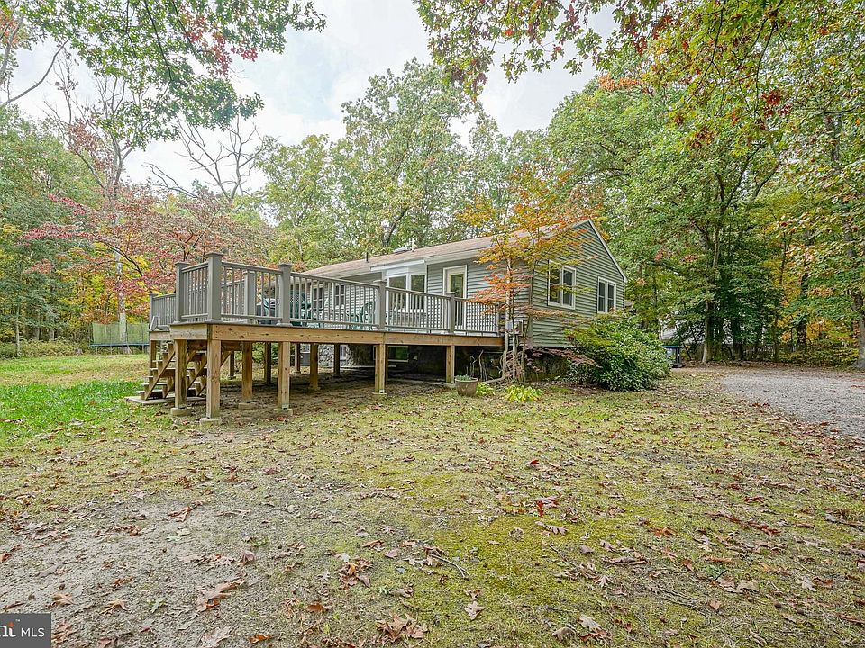 Enjoy your own private peace and quiet ….and live among the Pines …Beautiful, three-bedroom, 2 full bath, raised rancher tucked away on very private 3.41 acre parcel in the Pinelands. Recent upgrades: Newer roof, soffits (approx. 11 years old), septic system (approx.5 years old), newer deck, newer vinyl siding, attic fan (approx. 2 years old), water heater. (approx. 4 years old) and furnace. (approx. 8 years old ) Generous entry foyer with steps to the main floor or to the lower level. The top – main floor features an open floor plan with the living, dining room and kitchen open together. Step out of the dining room onto a huge, oversized deck. Delightful kitchen with a bay window overlooking the deck and side yard, white wood cabinetry, tile countertops, whitewashed brick backsplash and complementing tile floor. The living, dining, hallway and master bedroom enjoy hardwood floors and the two additional bedrooms are carpeted. The main floor also consists of the master bedroom, two additional bedrooms and a roomy updated hall bathroom with tub/shower combination. The lower level features a fully finished basement with plenty of windows letting the light in. This area is encompassed by a large family room, gym area, office and unfinished/storage area which houses the mechanical systems and the washer/dryer hook up. Any of these spaces could provide many other uses: bonus room for guests, office, studio, craft room etc. The lower level also features a new bathroom with walk in shower. The property also features an oversized two car detached garage could be a great workshop or just a great space for the car enthusiast! Presently there are 2 new overhead garage doors. The Seller will be installing a new small sized door. The garage is being conveyed in as-is condition. Horses may be possible. #pineypower #lovewhereulive