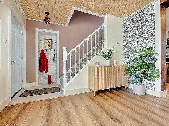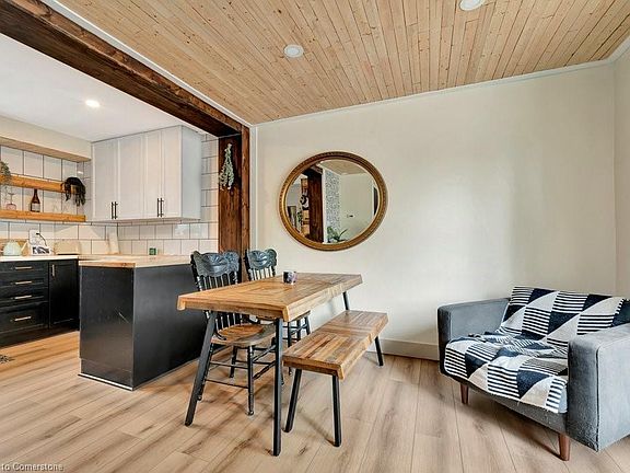 Affordable, beautiful, move-in ready, close to the highway and so much more! This freehold rowhouse, in the heart of Preston, is sure to win you over and check all your boxes! As you enter you'll feel the amazing energy and comfort throughout the main floor, hosting a wonderfully cozy sitting area and dining room, leading straight to the kitchen. The updated kitchen offers great Corian counter space, stylish ceramic back splash, an abundance of cabinets, stainless steel appliances, coffee nook, , a window overlooking the backyard and a patio door leading to the perfect backyard, where you can spend your evenings relaxing with a beverage of your choice. Upstairs is home to two very nicely sized bedrooms and the primary bathroom. The basement is also finished for additional living space, to host your family get togethers, as you make a lifetime of lasting memories in this stunning home. And as an added feature, in addition to the attached garage, with an entrance to the house AND the backyard, there are TWO parking spots in the driveway. What are you waiting for? Updates include, flooring 2025, dishwasher 2025, kitchen back splash 2024, garage door 2024, basement windows 2023/2025, kitchen counter tops, 2022, Patio door 2019