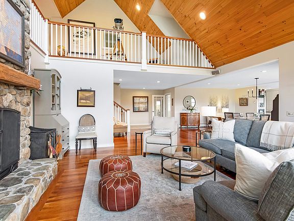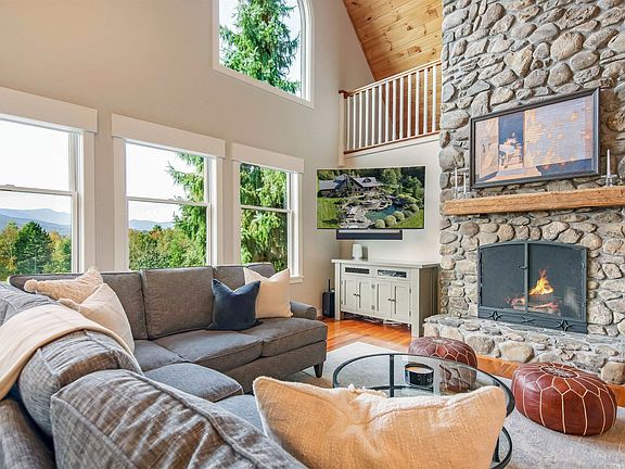 Nestled amidst the breathtaking beauty of Vermont's landscape, you will find a mountain retreat with Mt. Mansfield, Nebraska Valley and Camel's Hump views, along with breathtaking sunsets. Upon entering the spacious 5,648sqft home, you will be greeted by the extra-large mudroom that connects to the two-car garage, and makes packing for an adventure a breeze. Moving further into the heart of the home, you will be welcomed by an open floor plan that seamlessly connects the living spaces. This sun-filled living area boasts a floor-to-ceiling custom-built stone fireplace and a pine wood cathedral ceiling. The cherry radiant heated floors, along with a well-appointed kitchen, large walk-in pantry, and dining area that can seat 10 people, are just some of the many amenities that complement this space. A main floor primary bedroom with ensuite bathroom, and a separate half bathroom are just down the hall from the living space...plus a hidden nook for a home office. Another primary bedroom with ensuite exists on the second level, along with 2 more generously sized bedrooms and a 3/4 bathroom. The lower level walkout, is mostly finished and allows for workout and TV area, plus a ping pong table. As for the outdoors, the stonework is in abundance on the property, with a swimming hole, 2 waterfalls and a gas firepit. Schedule a viewing today and make your dream of owning a piece of Vermont's pristine beauty a reality. Sold mostly furnished-artwork is negotiable. Seller is Realtor in VT.