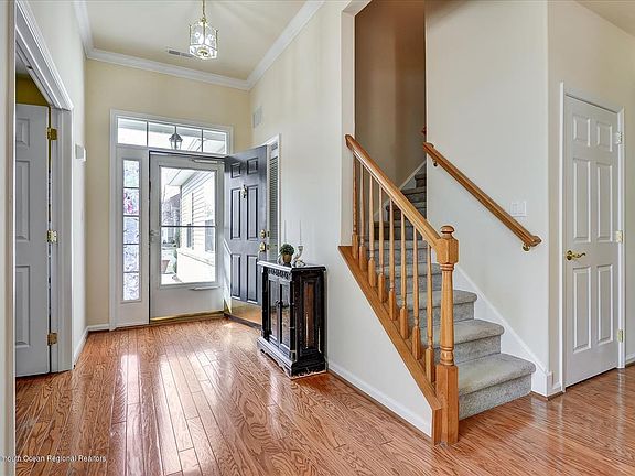 Stunning exp. Wellington w/brick elevation. This 3 BR 3 Full Bath home features grand entry w/HW flooring, French doors leading to office/library. 2 Story Living Room w/double sided gas FP. Formal DR area w/HW flooring. Gourmet kitchen w/custom 42' cabinetry, granite counters, breakfast bar and custom tiled backsplash. Family room open to kitchen w/vaulted ceiling and custom stone surround on FP. Expanded master BR suite w/walk in closet, double sink vanity and soaking Tub. 2nd BR on 1st level adjacent to full bath. Spacious loft area open to 1st level. 3rd BR and full bath in loft. Two zone HVAC. Custom paver patio. Beautiful landscaping. Clubhouse features indoor/outdoor pool, fitness center, game room, tennis and so much more. Close to NJ Tpk, nyc bus and shopping.