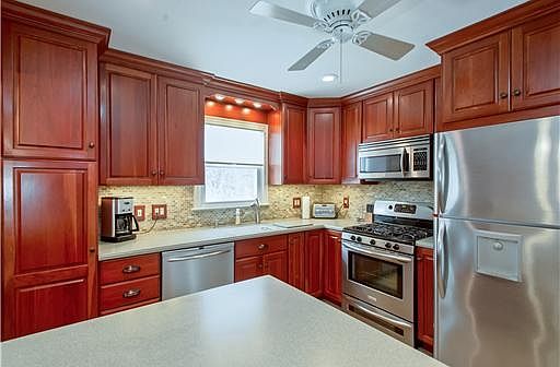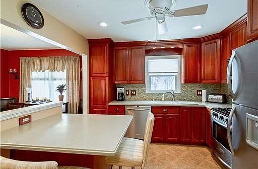 Excellent cul de sac location & curb appeal. Beautiful move in home! 4 Bed, 2 full baths. Just re-finished hardwood floors on main level. Newer carpet on ground level. Exquisite newer kitchen - corian counters, stainless appliances, maple cabinets, porcelain floor tiles. All appliances included!