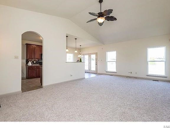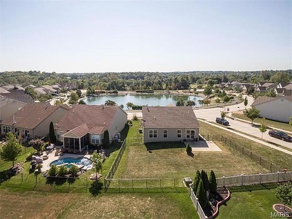 Fall in love with this charming cottage-style 2 bedroom, 2 bath ranch with a WATER VIEW! Super cute, spacious ranch with oversize, insulated 2-car garage. Relax on your covered porch with a view of the lake and fountain. Huge .24 acre fenced yard, large patio, fresh landscaping, enclosed soffit and fascia and exposed aggregate driveway. Inside youâll find an open floor plan with vaulted ceiling in Great Room, new carpet throughout, 9 ft ceilings, 42 inch cabinetry, backsplash, smooth-top electric range, microwave and dishwasher. Other features include main floor laundry, walk in closets, adult height vanities, low-E glass windows, upgraded lighting and ceiling fans. Full basement with rough in plumbing is ready for your finishing touches. This is a great condo/villa alternative in popular Montecito subdivision with easy access to Page Extension and Hwy 40.